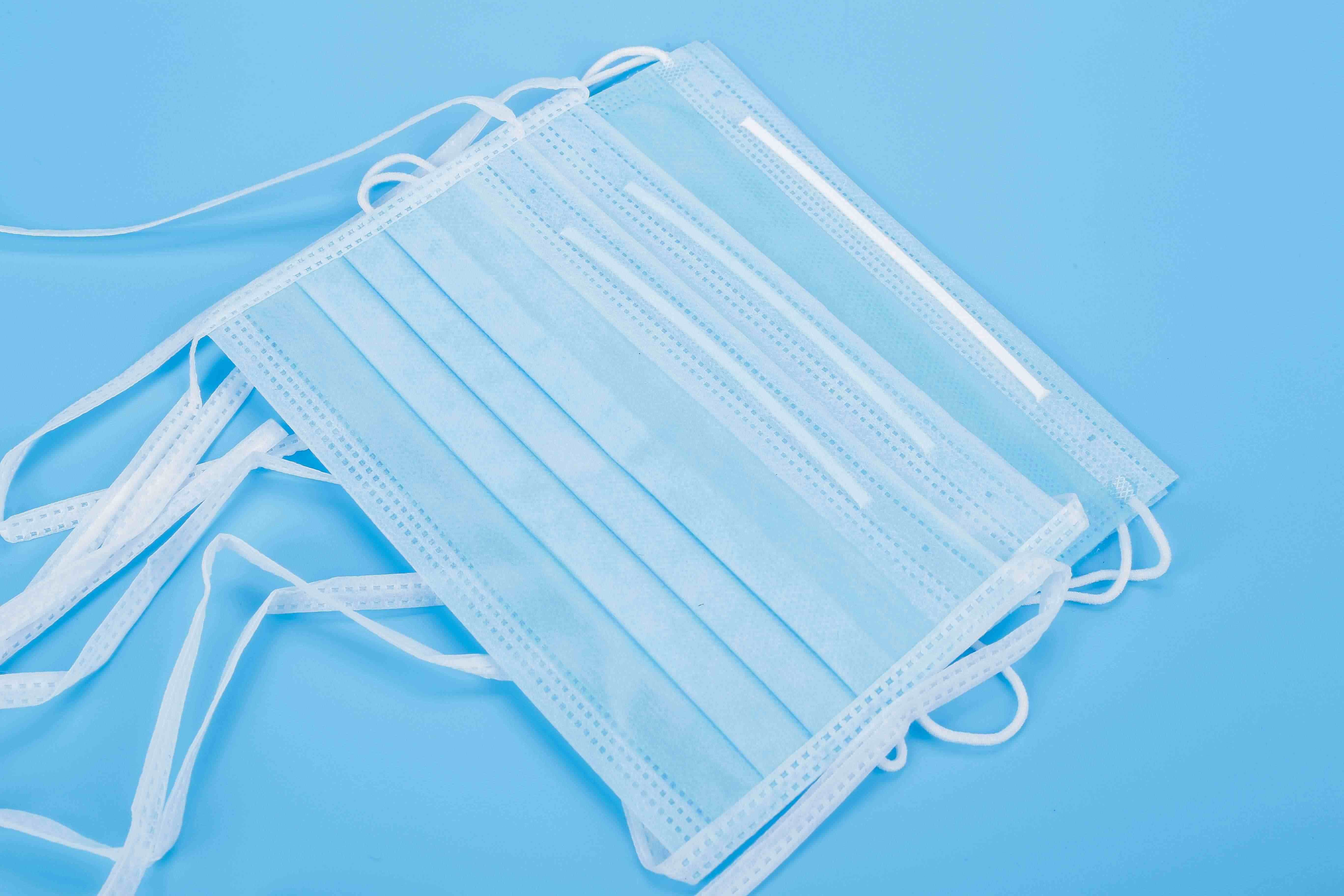 一次性使用口罩按結(jié)構(gòu)不同分為兩種型號(hào):A型由帶子和防護(hù)體組成,B型由帶子、鼻夾和防護(hù)體組成。帶子和防護(hù)體采用無紡布制成,鼻夾采用軟聚氯乙烯包裹鋁片制成